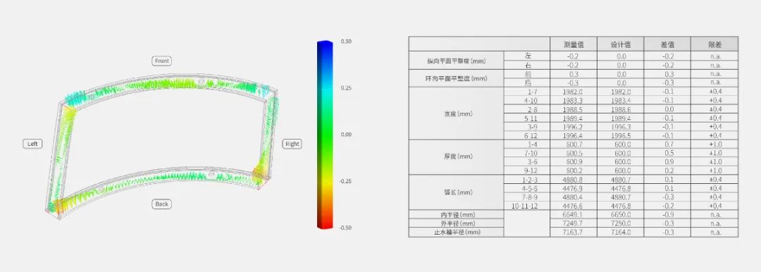 管片內(nèi)外弧長:內(nèi)外弧長的超限會(huì)影響管片的拼裝,造成管片擠壓磕碰,拼裝后的隧道出現(xiàn)錯(cuò)臺(tái)等問題。